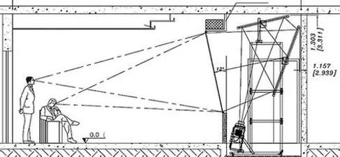 To get around this problem, I looked into the idea of rear projection and mirror rigs - using one or more mirrors to bounce the projected image onto a surface thereby shortening the throw distance needed. In doing this, I could in theory build a structure for a projection screen within which the projector could sit, thus containing the excess light, and use mirrors to bounce the video image onto the screen from the back. One limitation to this would be finding a material suitable to project onto which is able to hold the image without losing detail without letting too much